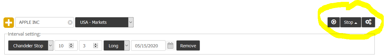 Stops can be activated at the top right above the chart.